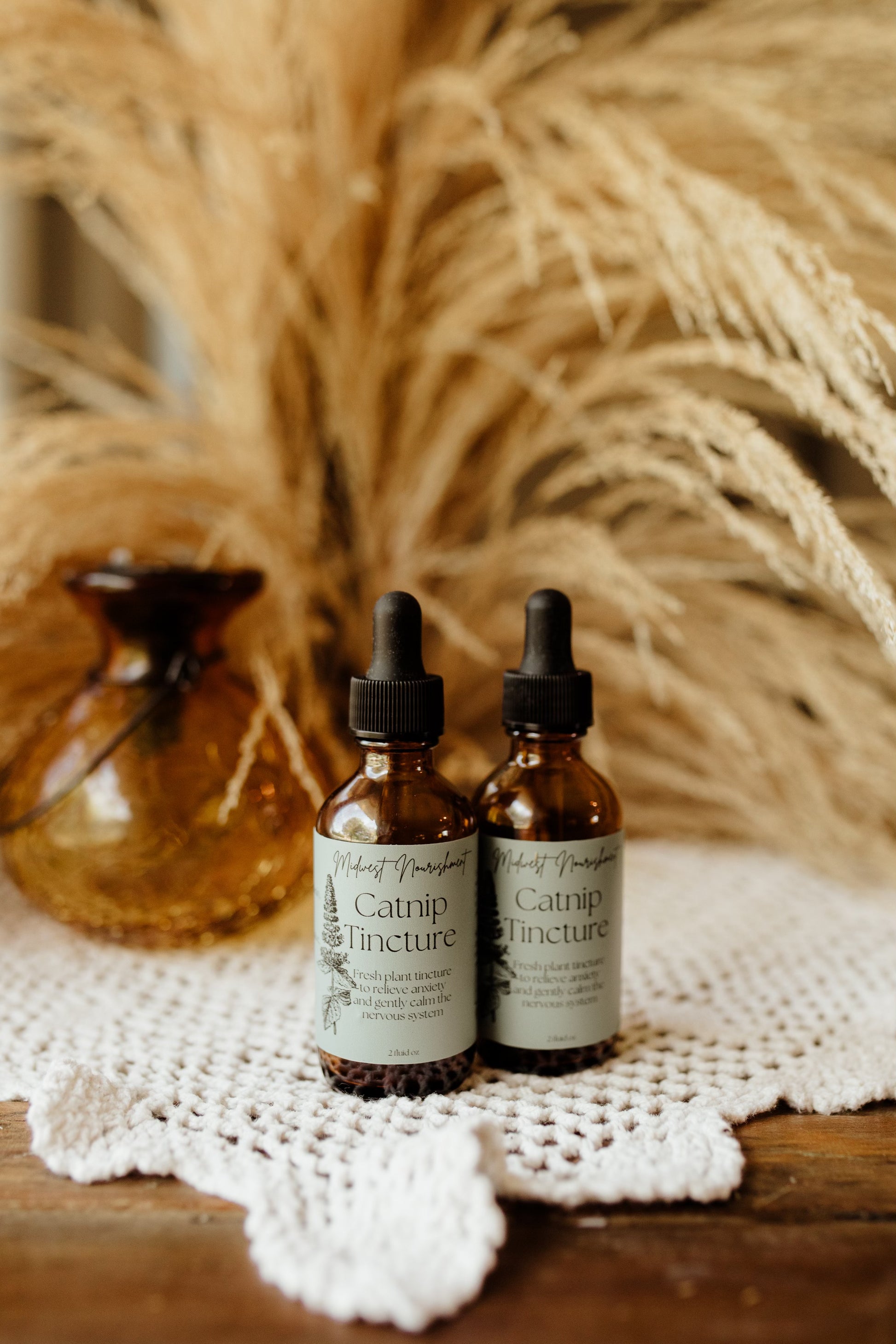 This catnip tincture comes in a 2oz amber glass dropper bottle.