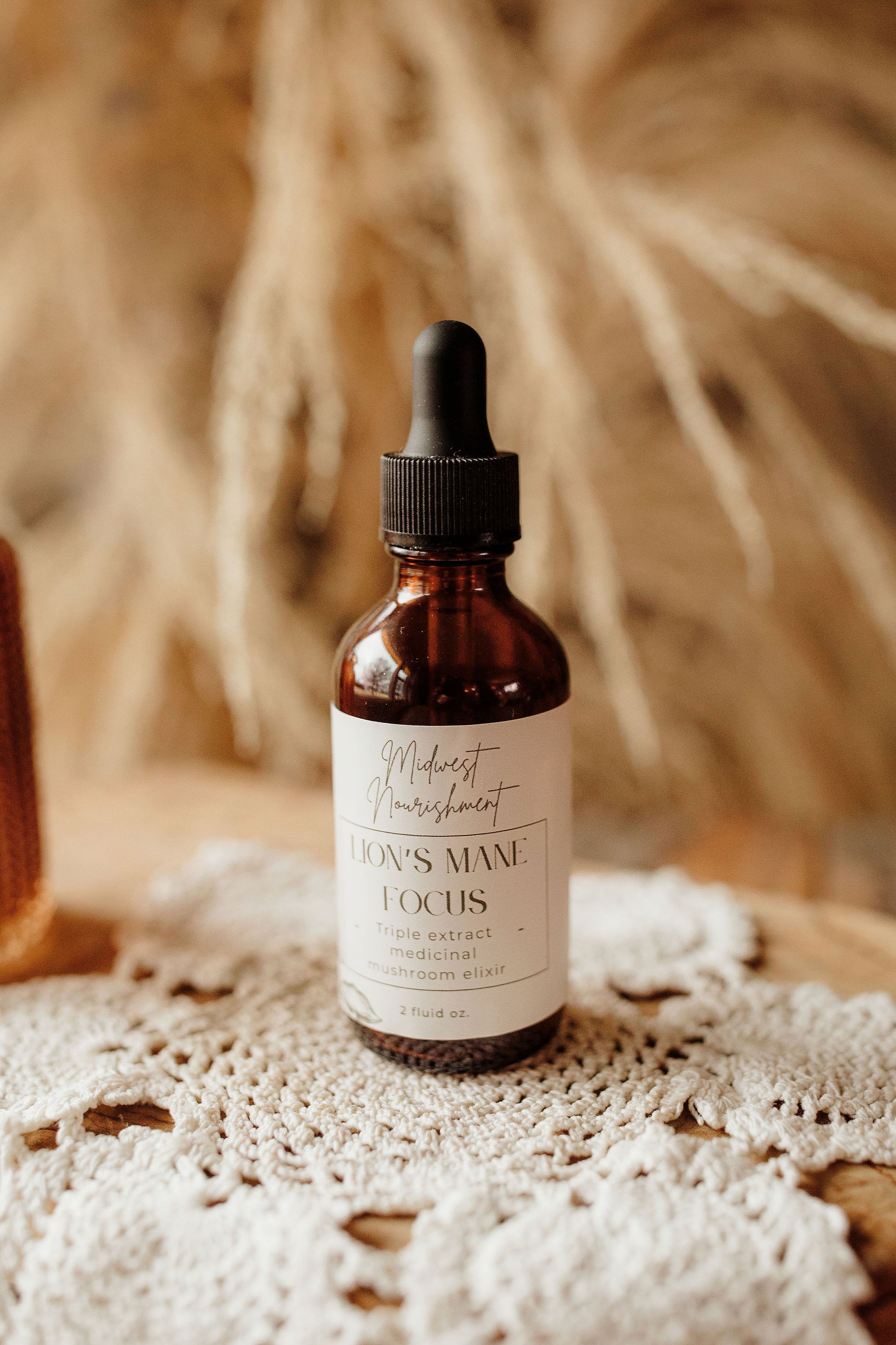 Ingredients: Lion's Mane mushroom, 190 proof alcohol, non-GMO palm derived glycerin, raw local honey, reverse osmosis water