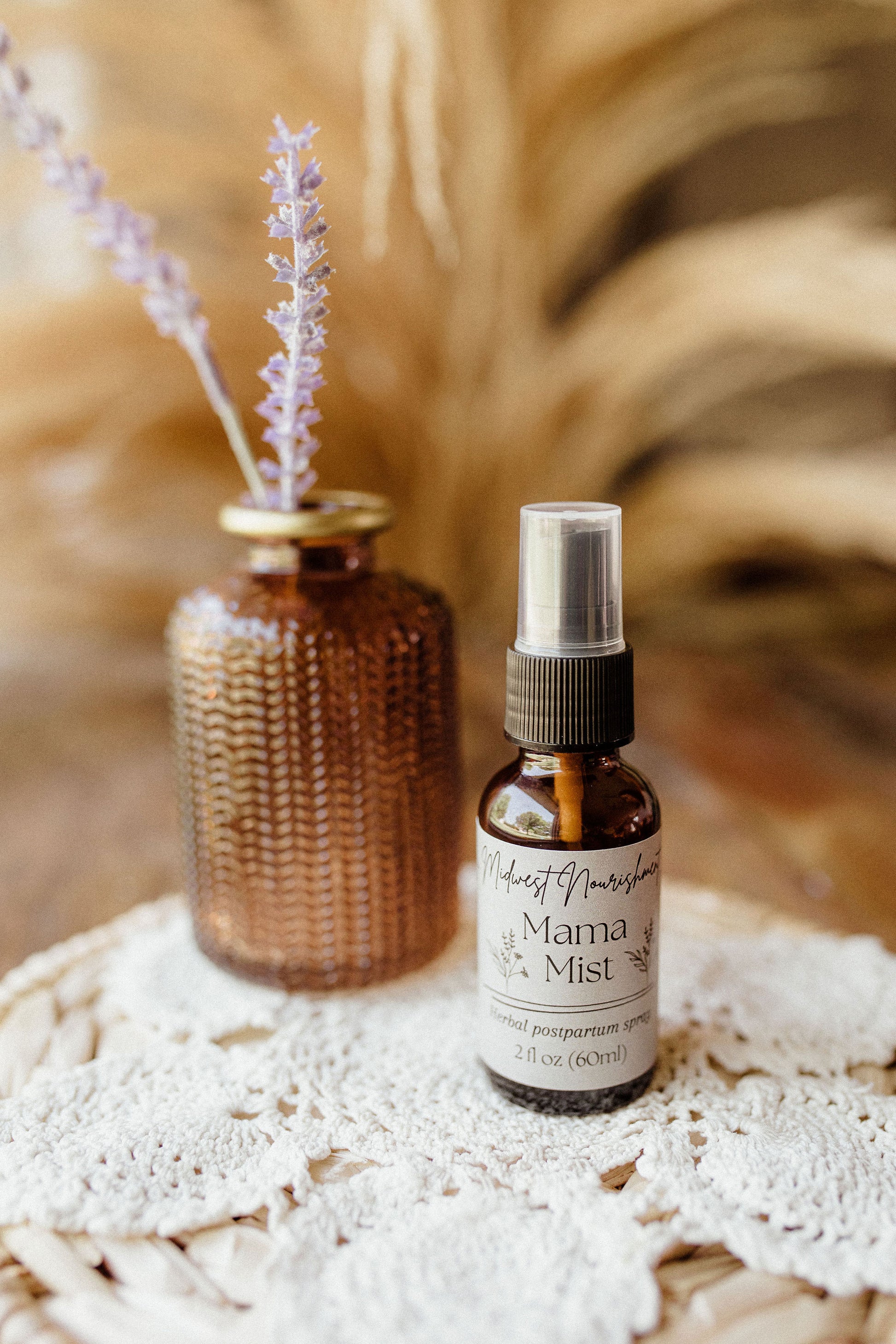 Perfect for postpartum mamas needing an herbal perineal healing spray. This whole herb infused witch hazel will help reduce inflammation and soreness postpartum and provide cooling relief if stored in the refrigerator. Mama Mist comes in a 2oz glass amber spray bottle and if you remove the plastic tubing from the sprayer, it can be turned upside down when spraying!