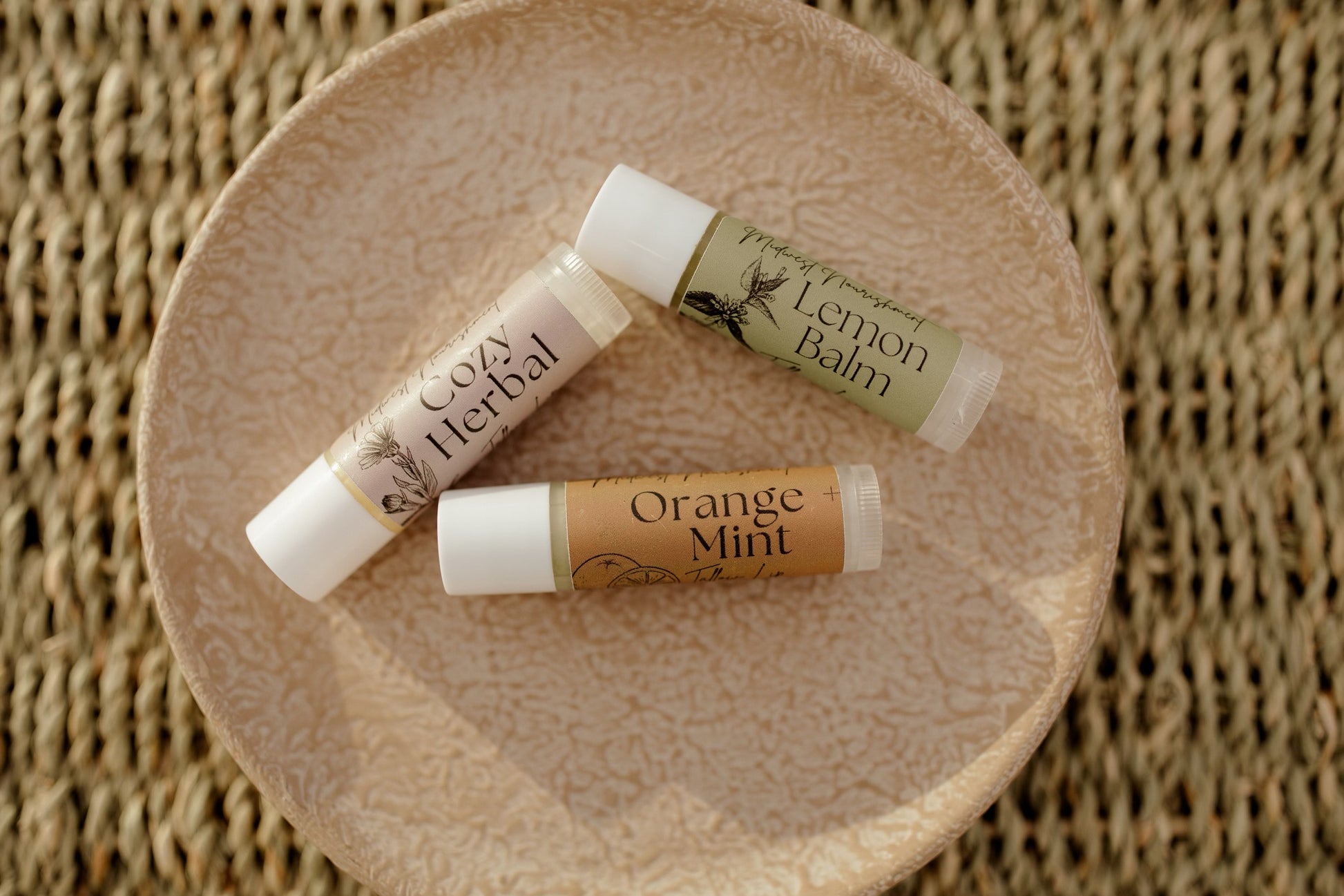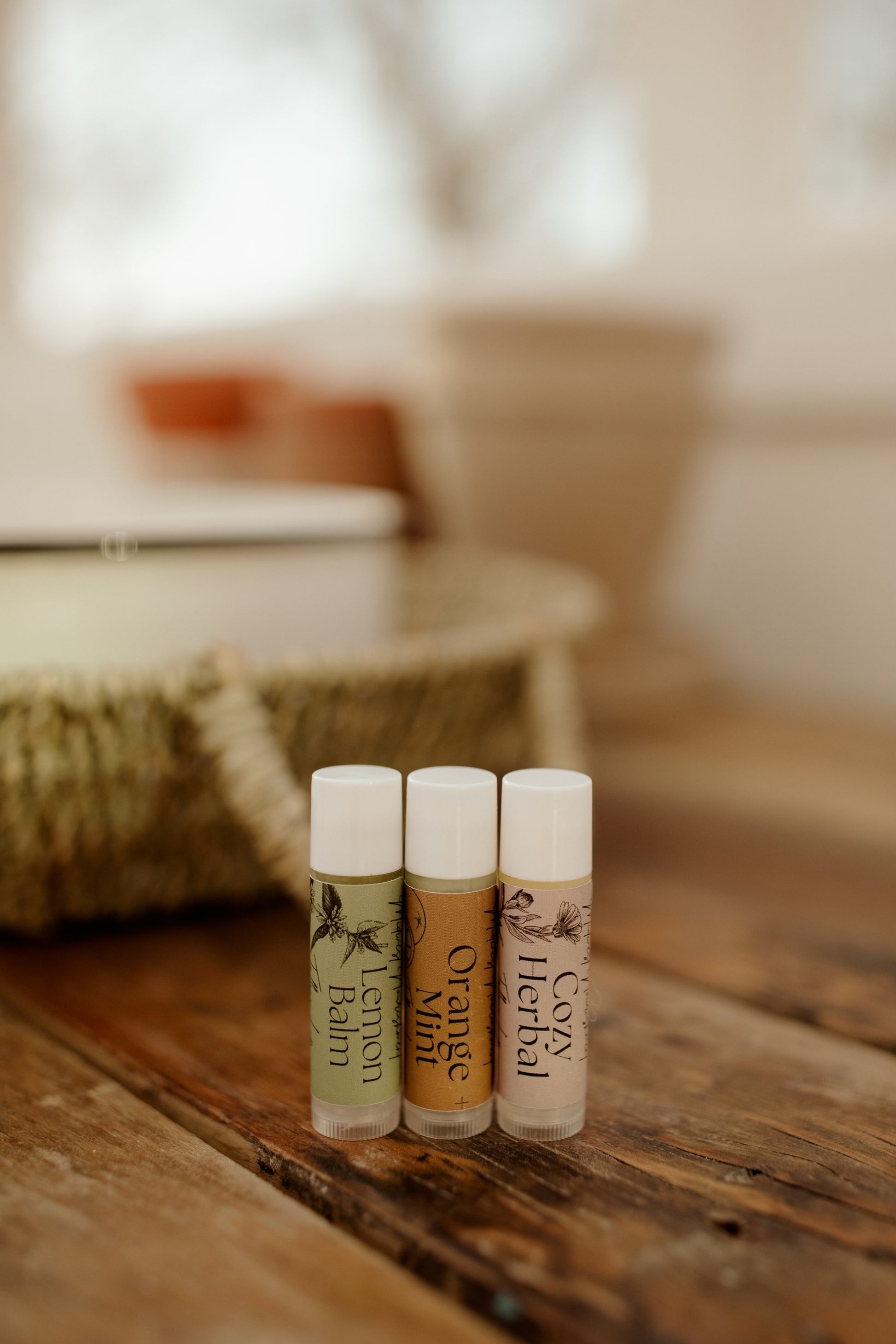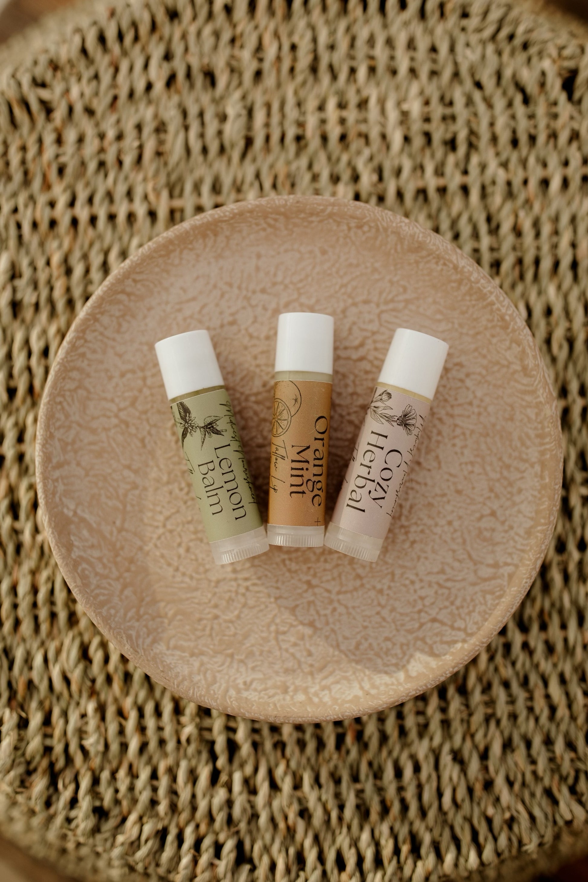 This 3 pack of lip balm includes one of each flavor: Lemon Balm, Cozy Herbal (a blend of organic chamomile, lavender, and calendula), and Orange Mint